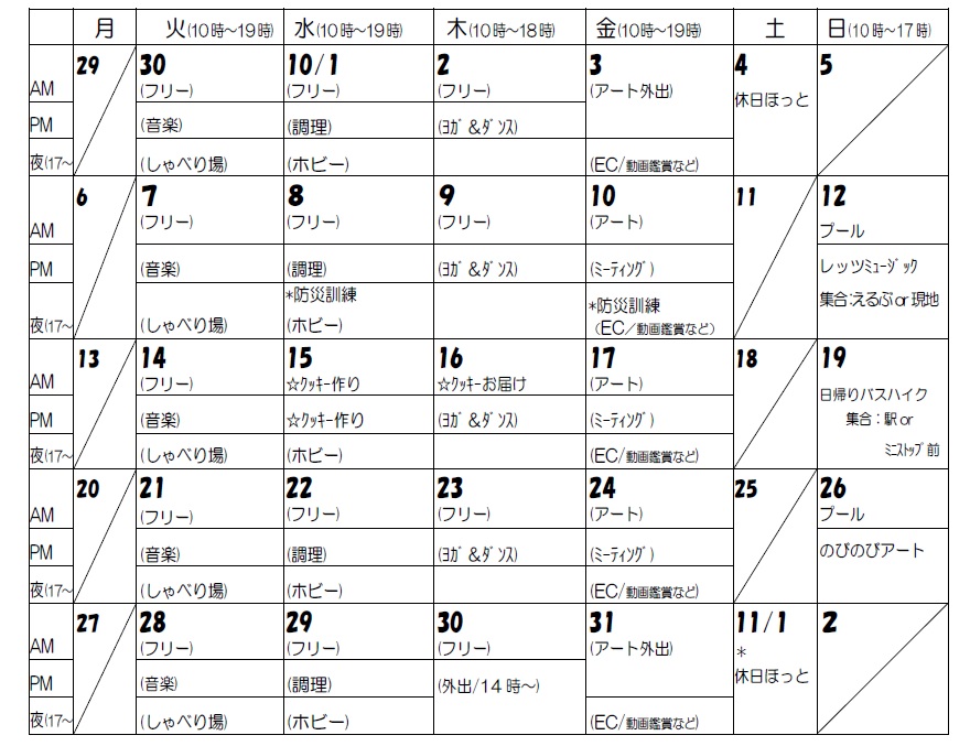 ※3…あそばん会では、外出・料理・リモート企画など、月によって様々な企画を実施しています。詳しくは下記予定を確認お願いします。