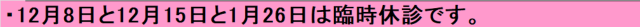 ■ 休診日・獣医師の勤務表 (診察をする獣医師の一覧表です、)