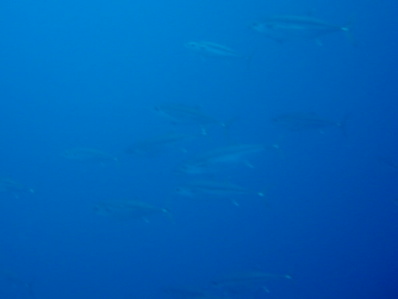 2003年04月27日(日) 「与那国名物のイリザキ」 旅 与那国のダイビングポイントと言えば「海底遺跡」がメインと思いこんでいたワシたち。 一緒にダイビングボートに乗り込んだ人から、「えっ?、イリザキよ〜!」と口をそろえて言われた。 そうなんですな〜、知らなんだ〜、そうだよね〜、大物見に来てるんだよね〜、みんな。(^-^) 与那国は、リピーターダイバーが多く、ハンマー、カジキ、ひょっとしてジンベエ狙いなんですね〜。 風向きも手伝って、今日は朝から2本続けて西崎、見ましたよ見ましたよ〜。(^0^) 1本目は、ハンマーヘッドの群れ20匹近く! 近くで見たくて、水深20mからイッキに35mにダッシュ。