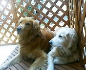2004年04月22(木) 「メリー&ハリー」 日常 昨日に続き28度、すんごくいい天気なのでベランダにソファを出して「ゆんたく〜」。 あ〜、気持ちいいの〜、ラッシュも幸せ〜、ゴロゴロ、昼の休憩を楽しんでいるのだ。 パティは発情期で、一人ひっそり2Fでお休み、すまんの〜、あと少しの辛抱だからね。 だって、ラッシュが、パティのパンツを〜脱がすんだもーーん。(^-^; BGMには、BIGINのオモトタケオをかけていたりする。 そ、そ、それって石垣モード!、飲み物はオリオンビール?(^0^) いえいえ、勘違いされそうなので言っておきますが飲んでませんよ〜。(^0^) 後に授業があるときは、絶対飲んだりしません(キッパリ) 週の半分は禁酒してます(た、た、たぶん) そんなメリハリがね、やっぱ楽しいお酒になるし、楽しい時間を生むと思うんだよね!(^0^)