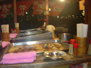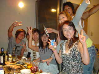 2006年08月12日(土) 「ちょっと大人なBBQ」 日常 夕方雷雨予報が見事にハズレて昼に雷雨、夕方にはキレイに晴れてきた。(^-^v 大分から持ち帰ったカボス・ユズ胡椒をテーマに宴の準備に取りかかる。 前菜は全部で7種、「小松菜と石垣マルーグァのおひたし豆板醤醤油」、良いデキでグッ! 「生タコカルパッチョ」「冷やし大根のかぼす胡椒風味青唐辛子添え」で夏を演出。 定番「モヤシナムル」、枝豆は「天狗枝豆」、「酢キュウリ辛味噌&ユズ味噌二種添え」。 本日初挑戦の「冷製茶碗蒸しジュンサイ&オクラ乗せ」は、サッパリダシで美味しい! 主菜炭火は、パプリカとズッキーニの丸焼き・オリーブオイルからスタート。 活イカは生姜醤油で、鶏肉はモツ塩、心臓ユズ胡椒、ヤゲンユズ風味、モモユズ胡椒。 えのきと山茶茸のホイル焼き、バジルソーセージ。 銀座ホルモン本舗さんから仕入れさせていただいた牛肉がこれまた美味。 サンカクカルビはゴマ塩と大根おろしを乗せてパクパク。 ハラミは丸焼きしてハサミでチョキチョキして特製ダレに、うきゃーー、たまらんウマさ。 後菜には、4時間煮込んだ鶏ガラスープにモロヘイヤと三つ葉を入れてwithユズ胡椒。 五穀米オニギリは、アッという間に食べ尽くされてた。 デザートにT井くん誕生日祝いRテールのフルーツケーキにて終了〜。 会費2000円+飲み物持ち込みルール、本日もちょい予算オーバーだったけれど満足。 これで2000円だなんて、店で食べたらすごい金額になりそうな料理だね、ふっふっふ。 前菜作るときのライバルは、もちろん黒川温泉の山みず木。笑 つ、つ、疲れた...、でもみんなが喜んでくれて良かったヨ。