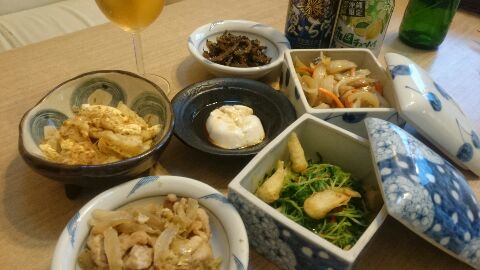 2015年08月12日(水) 「お料理メモ」 日常 今年は全然バーベキューしてない気がする。 今日のオキナワンバーベキュー、お料理メモ。 前菜☆ゴーヤの佃煮、☆まるーぐぁと豆苗のおひたし、☆もずくのたらし揚げ、☆ジーマミー豆腐。 ☆ゴーヤわたと豚もも肉の生姜風味、☆キハダマグロの南蛮漬け。 中菜☆竹輪のひらやーちー、☆ゴーヤチャンプルー。 すごーく大好きな☆白身魚のみぞれ煮、☆ソーメンチャンプルー 主菜バーベキューは、☆タコのレモン塩、☆鶏もも肉ゆず胡椒、☆カルビの梨タレ漬け。 最近のバーベキューに欠かせない☆カマンベールwithバケット。 後菜は、☆沖縄そばざんす〜。