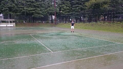 2016年08月18日(木) 「ポケモンがいた。笑」 WILLING 久々に世田谷公園のコートが取れたので、みんなでテニス。 高校生2人がなかなか来ない、、、待っている間に怪しげなお天気に。 4人揃って10分ぐらいでポツポツ、その後ザーザーと雨が降ってくる。 四面あるコートのうち、他の三面はサッサとやめて帰ってしまった。 この30分未満の段階なら、お金がかからなかったらしい。 知らないワシらは雨が降る中、コート横のベンチで雨宿り。 さらに雨がひどくなり、戻ることもできないのでずっとベンチで待ち続け。。。 結局、事務所に行った時には「1時間の料金で許してあげる」と言われる。 雨が上がるの待ってただけだし、モニターでもコート状況見れるだろうし!! 世田谷区のお役所仕事って感じかな〜。 うるさく言いたいなら、「コート取るだけで、前夜に直前キャンセルする」人たちにと思うが。 まあ、こんなことして雨の中を遊んでたポケモンのせいかも。。。