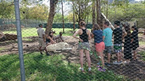 2016年12月14日(水) 「ワシらの旅の趣旨は?!」 旅 M保さんがどうしてもライオンを観に行きたいというので動物園に。 モーリシャスのこの動物園はライオンウォーキングが有名だ。 ライオンの尻尾を持って一緒に歩くという、勘違い人間のお散歩だ。