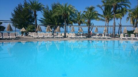 ようやく昼過ぎに辿り着いたルモーン。 腕に輪っかをまいてもらってオールインクルーシブの始まり。 ホテル2つが隣接されていて、どっちのホテルでも飲み食いOK。 レストラン5個、バー6個、どこでもOKだ。 カモーーーンッ!笑 チェックインの後、泳いでゴロゴロ、ビア&モヒート飲んだりして過ごす。 そしてディナーは、さっそく三軒ハシゴしておいた。笑 ちょっと待てーーーい!! ワシの体重がOKじゃなくなるぞ。。。