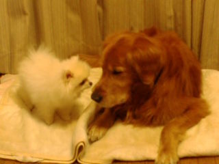 ラッシュが一人ぼっちだと可愛そうなので、もう一匹犬を飼うことにした。 名前は、ハナミズにした。 まだ3ヶ月のポメラニアンだ。 なんてね、飼うのはウソだ(笑)、K腹ん家のハナだ。 ラッシュは、パティを想い出しているだろう。 幼いパティと出会った、あの日をきっと想い出しているに違いない。 喜んでいるラッシュを見ていると、パティの幼いときを想い出してちょっと寂しくなった。