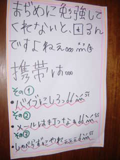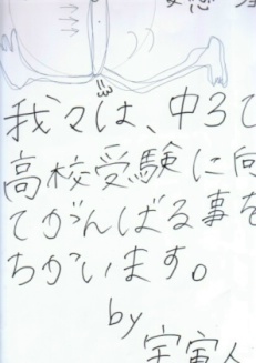 2003年07月23日(水) 「ゼミの始まり〜」 さあさあ夏期ゼミ、朝から張りきっていこーー、って感じで、がんばるのだ。 初日の昨日も2人だけしか時間通りに来ない、今日もまた...。 ホントにがんばるの....?、朝9時、6人の内、まだ2人しか来てない宇宙人グループ。 シーーン、ま、静かでいいか(T0T) そして全員が揃ったのが10時半、ま、にぎやかで!、いいのか?(T0T) 宇宙人との戦いは、またしても始まるのであ〜る。(^0^)