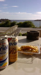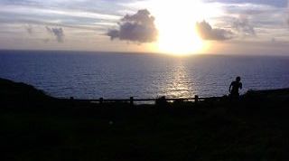 マハナに夕日をみんなで見に行って、ショップの犬も一緒にビアで乾杯。 民宿の食事を終えてまたも宴会、伊勢エビをホイル焼きでいただく、もう嬉しすぎ。 泡盛がまたもや進む。 帰り道の天の川は目映いぐらいに、闇夜に横たわる。 粟国ってイイ。
