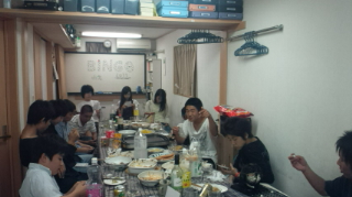 2011年07月22日(金) 「BINGO−2011」 WILLING 今年も行くぜ、BINGO大会。 WILLINGでBINGO大会を始めたのは、92年か93年。 てことは、18〜19年続いていることになる、歴史じゃの〜。 当初は寄せ集めの、ホントに面白がってやってた感じだった。笑 さて今年のBINGO大会、豪華賞品、笑えるグッズ、しょ〜もな〜い物(笑)まで取り揃えました。 料理は今年も屋台風でアレコレ作りましたよ。 枝豆、ソーセージ鉄板焼、とうもろこし鉄板焼、ポテトフライ、ソバ飯、鶏もも肉の唐揚げ。 豚しゃぶwithゴマダレ、牛しゃぶwithポン酢豆板醤、モヤシナムル。 ポテサラ、冷製明太子パスタwith温玉、三種チーズのグラタンなども作ったよ。 でもね、みんな食べるよりBINGOに夢中。 毎年がんばって料理作るけど、余るんだよね〜。笑 明日の朝、余った物はゼミの人たちが食べてくれるから良いんだけどね。 今年のBINGOは盛りだくさん、MACカード、シルバーリング、冷風機、ダーツ。 箱物もケッコウありますよ、ポテチ1箱、カップ焼きそば1箱、コーラ1箱、ドクターペッパーも。 今年はKキがケッコウ持ってったね〜。 楽しい時間もあっと言う間に終わり、そしてワシの夏は終わった感が増すのであった。笑