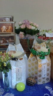 2010年06月06日(日) 「遅れた母の日」 日常 母美和子のために、ベランダディナーを開催する。 何十回と来ているのにベランダで食べるのは初めてだという、ちょっとビックリ。 今の時期が、ベランダディナーのベストシーズン。 春でも寒すぎ、夏になると暑すぎる。 昨夜からの続きでYくん、カウンセラー仲間のT女さんもお招きしてディナー。 本日のメニューはオキナワンイタリアン。 イカのマリネ、ミニアスパラのマスカルポーネシュペック巻でシャンパンにシフト。 フリット三種(ゴーヤ、島らっきょう、筍)、ライスボールで白ワインにシフト。 浅蜊と&とんぶりの冷製パスタ、新じゃがパルメジャーノ焼も食べる。 スペインバル風マッシュルームのオーブン焼、骨付きラムのハーブソテーで赤ワイン。 最後はバニラアイスwithちんすこうで締めくくり。 遅れた母の日って感じですかね。 M保さんがカーディガンを美和子に贈ってくれた。 すまぬ、父ヨウザブロウ、キミの父の日は東京に来ない限りナシだ。笑