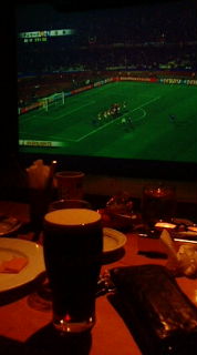 2010年06月24日(木) 「渋谷のバーで観戦」 日常 深夜3時半からW杯予選デンマークvs日本戦。 引き分け以上で予選リーグ突破となる。 今宵もちょいと渋谷のバーで観戦しますかね。笑 前回行けなかったM保さんが張り切っている。 3時まで仮眠、M保さんと2人で渋谷バーまでタクる。 実を言うと、今日で終わりだろうと思って来た。笑 前回と同じくギネスビアを注文して、まったり観戦モードに入る。 前半を終えて2−0で日本が勝っている、ぶっちゃけ今までにない試合展開。 こんな強い日本を観たのは初めてなので、どうやって応援して良いのかが分からない。笑 3−1で日本勝利!、いつの間にかTムラが来ていた。 前回の罪をはらすつもりだったのか?(笑) 店を出るとすっかり明るくなっていた。 ノンアルTムラに送ってもらって帰宅。 渋谷駅を回って帰ってもらおうと思ったのだが、M保さんが眠そうなのでやめた。 やっぱり渋谷駅はバカ騒ぎだったらしい、ちょっと見物しても良かったかな。 自分たちの情熱や思いをどこにぶつけて良いのか分からない若年層たち。 このようなバカ騒ぎのニュースを見ると、自分を磨くことの大切さを感じるんだよな〜。