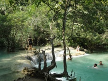 2013年03月12日(火) 「クアンシーの滝、まったりドライブ」 旅 今日も朝6時に起きて托鉢を見る。 早起きして托鉢の姿を見ていると、なんだか心が洗われるようだ。 日曜に街歩きは、一通り行ったし〜、昨日は川下りもしたからヒマ。笑 トゥクトゥクをチャーターして、クアンシーの滝に泳ぎに行くことに。 チャーターとか偉そうに言っても(笑)、二人で5時間2000円ぐらい。