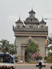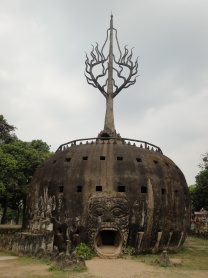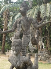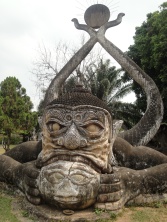 2013年03月15日(金) 「ブッダパーク」 旅 ビエンチャンでは行きたいとこがあった、ブッダパーク。 行くのは、けっこうメンドクサイ。(笑) ホテルからバスターミナルまで歩いて30分ぐらい。 バスはたくさんあるし、ラオスの文字読めないし。笑 タイとの国境まで行くバスはどれかと英語で聞いて乗る。
