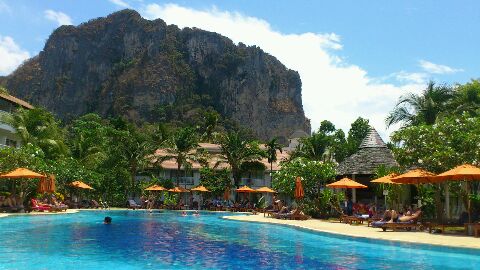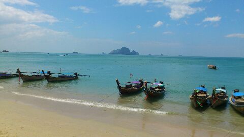 2014年03月15日(土) 「アオナン」 旅 バンコクで乗り換えて、クラビに。 いつもは飛行機の中で半ズボンに着替えるのだが、眠すぎて忘れてた。 タイは暑かとですタイ。 クラビからアオナンに車で30分、今回の旅の拠点はこのアオナンビーチ。 ツアーで飛行機と最初の3泊を抑えて、延泊分の5泊は自分でホテルを予約した。 「ギリ割」という格安チケットでアオナンのホテル込みだったのだが、立地条件が完璧。