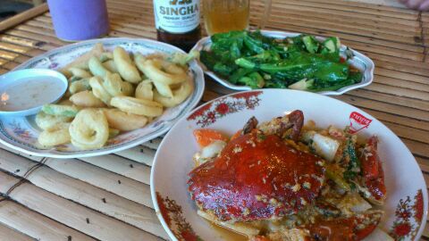 きっと明日には読み終えるだろうな、やっと成就する。笑 夕方はシーフードを食べに行く。 海老天麩羅(80バーツ=270円ぐらい)とか食べると、マヨネーズが欲しくなる。 もちろん頼んで出してもらうけれど、ああ、キューピーマヨネーズが恋しい。笑 持ってこようと思っていたのに、忘れてきてしまった。涙 そこまでする?笑 BLACK CRABのイエローカレー風味を食べたらゲキウマだった。 量り売りで240バーツもするけど(800円ぐらい)。 高級ホテルでダニに噛まれまくったが、この料理が美味しかったから許そう。 (ダニとかに噛まれるのは、旅してたらいつものことですタイ) ちなみに英語でダニはmiteと言いますタイ、血を吸うマダニは〜別の〜、忘れた。笑