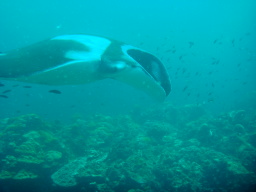 しかしぶっちゃけ、ワシ、マンタはもう見飽きてんだけどってぐらい見てるんだけど。笑 むしろロウニンアジが数匹、ビュンビュン飛び回ってた方が面白かった。 ノルウェーから来てた白人のおじさんはマンタ初経験だったらしく、興奮状態。 上がるサインをしても浮上しないので、後からガイドに怒られてた。笑 ヒンデンでの2本目もマンタだらけで、浮上サインをまたもシカトしてたけどね。笑 このポイントのマンタは、人にぶつかってくるぐらい近寄ってくる。 ワシもあと10cmってとこまで近寄ってきて、触ってしまうとこだった。 もちろん触らないけど、触るとガイドがうるさいだろうな。笑 海の中で注意しに行く時、自分はサンゴとか折ったりしてるくせに。笑