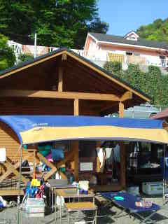 2006年05月03日(水) 「道志村キャンプ@」 旅 Sンちゃんファミリーに誘われて、2ヶ月前に予約を入れた道志村渓谷キャンプ場へ。 東名も中央高速も30キロ以上のGW大渋滞なので、一般道でのんびり道志村へ。