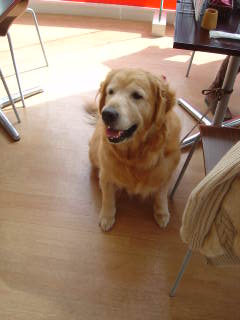 2008年10月18日(土) 「ロージーのお見舞いに行く」 日常 我が家のラッシュ(ゴールデン12歳♂)とパティ(享年10歳♀)には、犬仲間がいる。 ブラン(ラブラドール11歳♂)、ロージー(ゴールデン11歳♀)だ。 みんな同い年ぐらいでレトリバー、いつも仲良くしてもらっている。 パティと同い年のロージーは、春に腫瘍が見つかり余命3ヶ月と診断された。 その頃は一緒にドッグカフェに行けたりもして、元気な状態が続いていた。 夏を越すことができ、11歳の誕生日を迎えた頃から徐々に容態が悪くなっているという。 起きあがるのもつらそうだと聞いて、容態が悪くなったロージーのお見舞いに埼玉へ行く。 ドッグカフェに行って、元気に歩いていた頃の姿が目に浮かぶ。 今日は絶対に涙を見せないと誓ってロージーに会う。 後ろ足がむくんでいて、お腹には水もたまっていて、起きあがることはつらそうだ。 持っていったプリンは食べてくれた、食欲は大丈夫そうだ。 ロージー、少しでも良くなることを祈ってるよ。