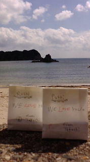 2010年10月02日(土) 「WE LOVE YOU」 日常 ラッシュとパティとの、散骨の旅に出かける。 行き先は外房の守谷海岸、毎年毎年、よく行ってた海。 水に溶けるでんぷん質の紙で袋を作り、粉骨したラッシュとパティの骨を包んで海へ。 今日は暑いぐらいで、きっと喜んで泳いでいることだろう。 WE LOVE YOU. 懐かしい、けれど楽しい想い出がたくさん詰まっている海。 この守谷海岸にまた来ることができて良かった。
