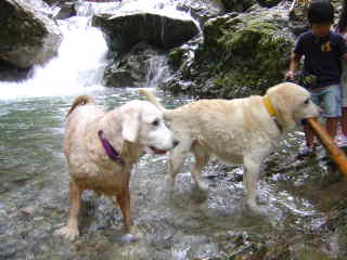 ラッシュは?! ラッシュじいさんは川の水が冷たいらしく、ご遠慮らしい。笑