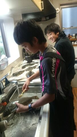 2015年09月第四週09/21-27 2015年09月21日(月) 「お魚教室第二弾」 WILLING 八王子から昼前に戻ったら、Sンちゃんから電話。 「ヒラメ釣ったけど、いる?」 いいね〜ヒラメ。 白身魚が大好きなワシなのである。 2時から補習をしていると、Sンチャンが車でやってきた。 興味津々で、車から降ろされる魚を覗き込む中学生たち。 ヒラメと鯛をいっぱいもらったから、じゃあまたやっちゃいますか! 持って帰りたい人を聞いたら4人いたから、「お魚教室」の始まり〜。