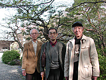 南青山でほっとするスポットは根津美術館のお庭。 戦前から、近くの青山学院中学部に通ってたA、Y、H、の3君も、久振りの表参道を歩き、浦島太郎状態。 両端の2人は、私の写真の先生です。