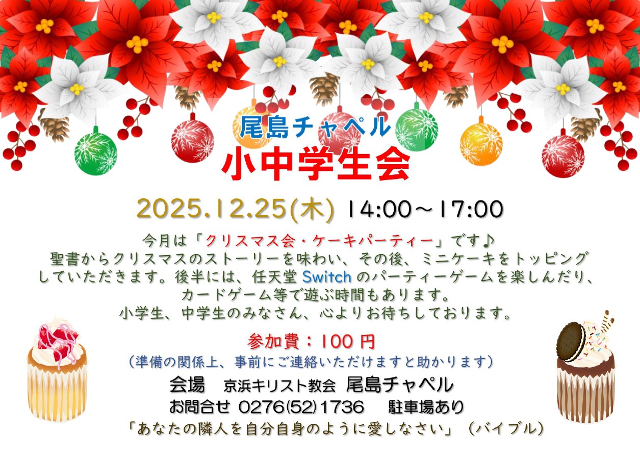 2025年11月2日(日)ファミリー礼拝での賛美 「土の器」 ↓ ![]() ![]() ![]() ![]() ![]() 「京浜キリスト教会 尾島チャペル(単立)」 教会所在地: 群馬県太田市二ツ小屋町71−1 (国道17号上武道路、利根川新上武大橋そば) 電話: 0276(52)1736 牧師: 吉井丈雄・優香 私たちの教会はプロテスタント教会です。 メソジスト・ホーリネスの流れに沿う教会であり、 18世紀英国の牧師ジョン・ウェスレーのメソジスト運動を 源流としています。 (青山学院大学・相模原キャンパスにはウェスレーチャペルがあります) 2023年9月に行われたJCE7に参加いたしました。 「おわり」から「はじめる」宣教協力を通して、 各地で主の素晴らしい御業が前進していきますように。 過去のイベント ![]() ![]() ![]() ![]() ![]() ![]() ![]() ![]() ![]() ![]() ![]() ![]() ![]() ![]() |
